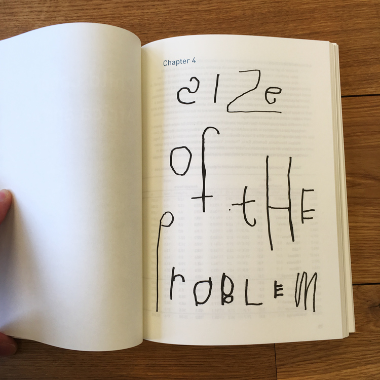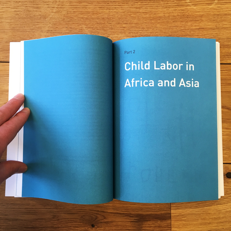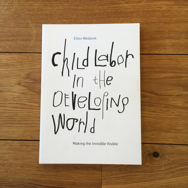 Ellen deed onderzoek naar kinderarbeid in ontwikkelingslanden. Dat inspireerde me om mijn neefje van 5 in te zetten om de typografie van de hoofdstukken te verzorgen, evenals het omslag.